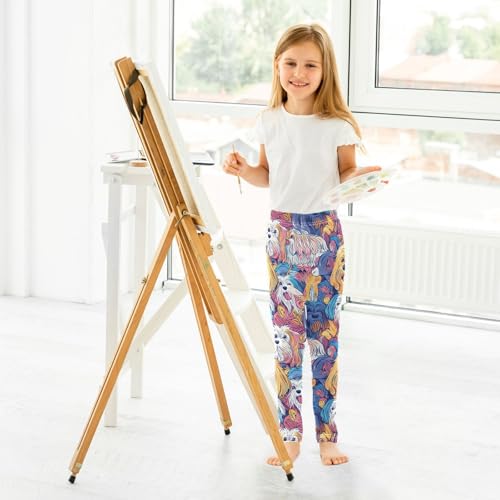 Colorful Dog Head Girls Casual Leggings for Kids Printed Long Pant Bottoms Stretch and Soft 6