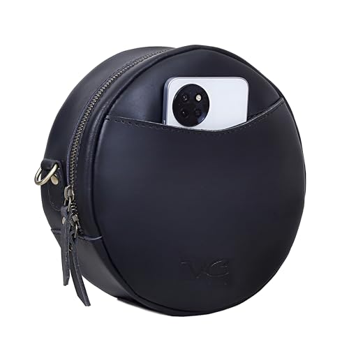 • Stylish Design with Ample Storage: Our VC leather crossbody bag boasts a trendy circle design and provides multiple pockets for effortless organization. It includes 1 front open pocket, 1 back zipper pocket, and 1 main zipper pocket which contains an additional zipper pocket, a main pocket, a slip pocket, and a keychain.