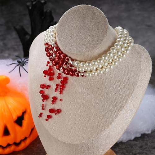 Crysdue Halloween Dripping Blood Vampire Choker Necklace Gothic Simulated Pearl Necklace for Party Prom Costume Jewelry 6