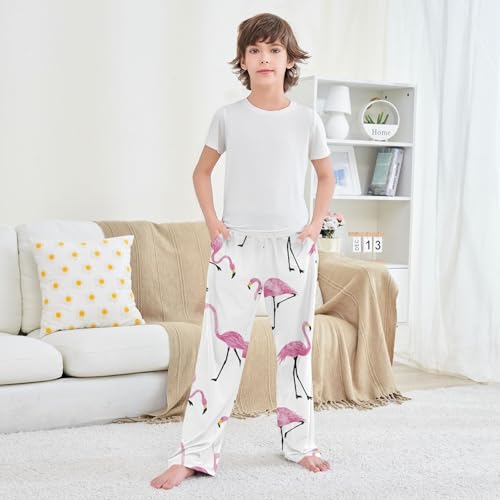 Flamingo Color Boys Pants Boys Athletic Pants Long Pant for Boywith Pockets Wide-Leg Size 6-14Y 6
