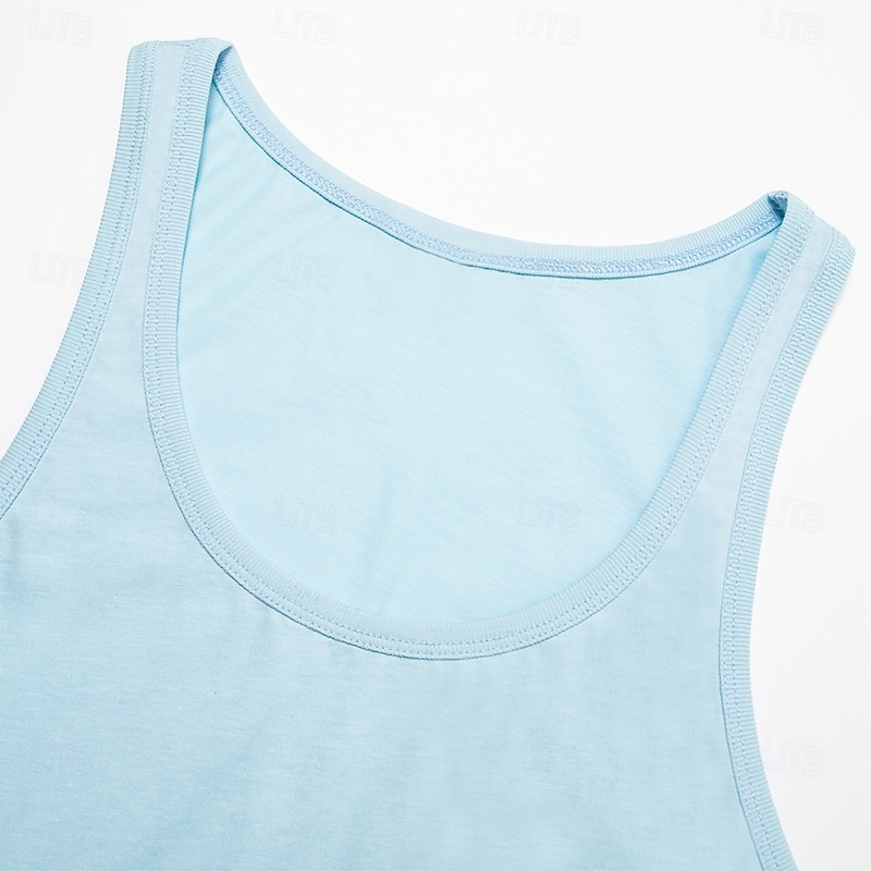 More information about Men Sleeveless Round Summer Solid Color Vacation Daily Casual Plain Outdoor Vacation Home White Light Blue Top Tee for Men