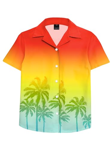 AOBUTE Unisex Kids Halloween Shirt Boys Button Down Short Sleeve Top Girls Holiday Party Golf Tee 5-14 Years 7