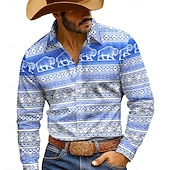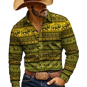 More information about Men's Buffalo Plaid Cowboy Indian Culture Shirt Western Shirt Button Up Shirt Long Sleeve Vintage Retro Outdoor Casual WorkWear Spring Fall Turndown 3D Print Collared Shirts Blue Brown Green