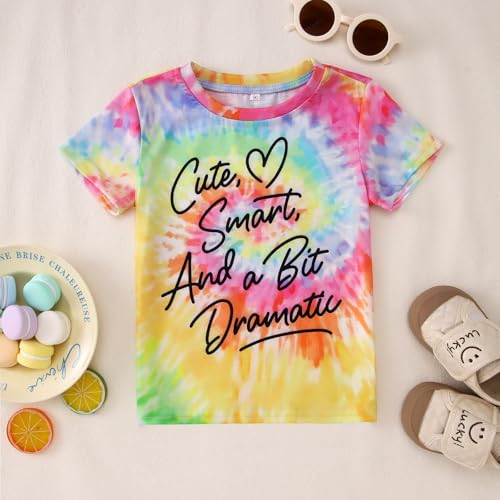 • Features: Adorable birthday shirt for toddler girls, cute letter print and colorful design add excitement to your little one's summer outfit. Lovely birthday girl shirt, Tie-dye style pullover t-shirts for kids, short-sleeve Cute Smart and A Bit Dramatic letter printed shirt, crewneck party outfit tops for baby boys and girls.