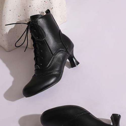 KysBloes Vintage Victorian Boots for Women Kitten Heel Ankle Boots Lace Up Low Heel Witch Shoes Oxford Wingtip Boots(1-Black,US size 8.5) 4