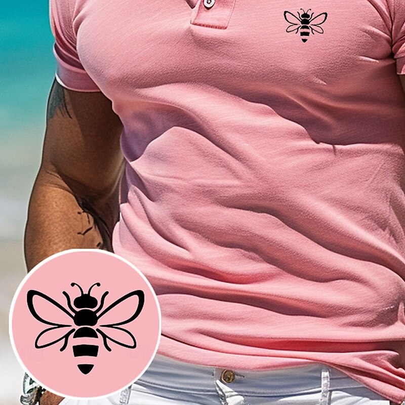 HOT ! Men's Animal Bee Polo Short Sleeve Polo Shirts Collared Shirts Business Casual Outdoor Athleisure Daily Wear 3D Print Summer White Pink Blue
