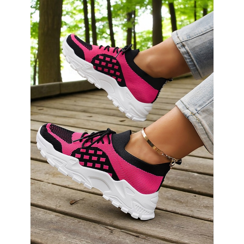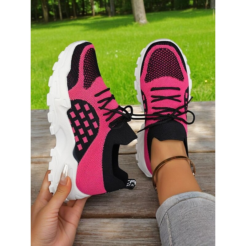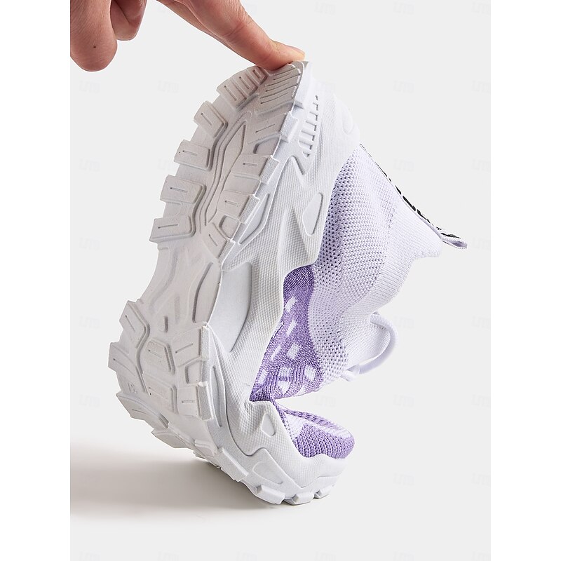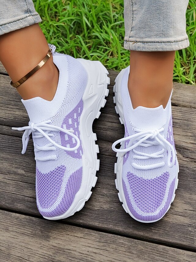 HOT ! Women's Flyknit Athletic Shoes - Lightweight Breathable Sneakers with Purple Design, Lace-Up Closure, Perfect for Casual Wear and Outdoor Activities