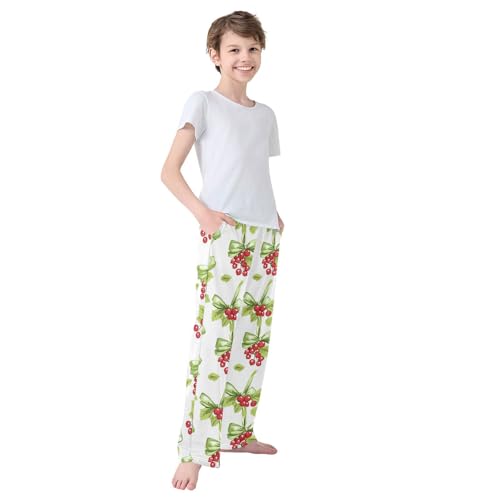 Pajama Bottoms, Pajamas Long Pant Berries Lounge Wear Casual Green Ribbon Bows Sleep Pants Soft Pjs Sleepwear 5