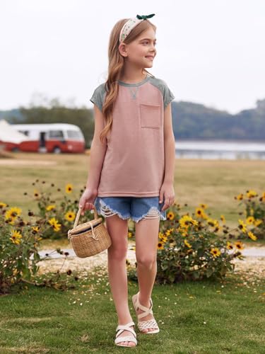 Imily Bela Girls Summer T Shirts Casual Cap Sleeve Crewneck Raglan Tops with Pocket 4