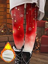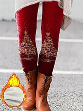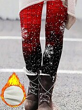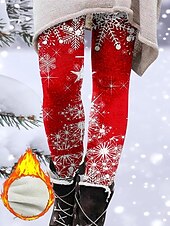 More information about Christmas Women's Leggings Cozy Leggings Vacation Vintage Fashion Full Length High Waist Pants Graphic Snowflake Printing Fleece Thermal Warm Comfy Stretchy Outdoor Casual Daily Winter claret