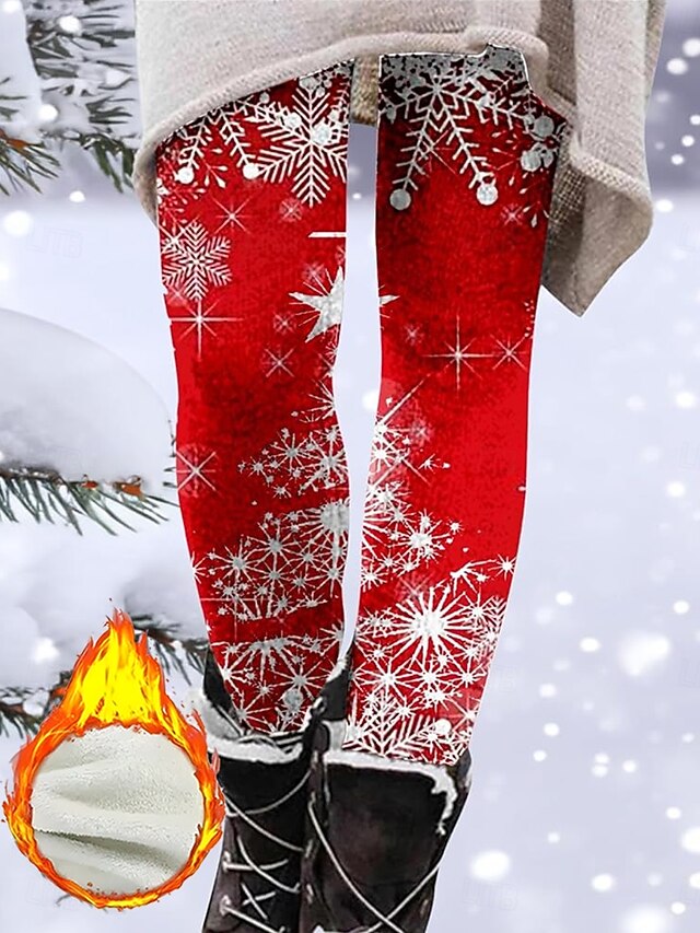 HOT ! Christmas Women's Leggings Cozy Leggings Vacation Vintage Fashion Full Length High Waist Pants Graphic Snowflake Printing Fleece Thermal Warm Comfy Stretchy Outdoor Casual Daily Winter claret