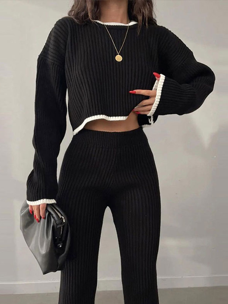 Model Number: Women Casual Contrast Slit Sweater Suits
