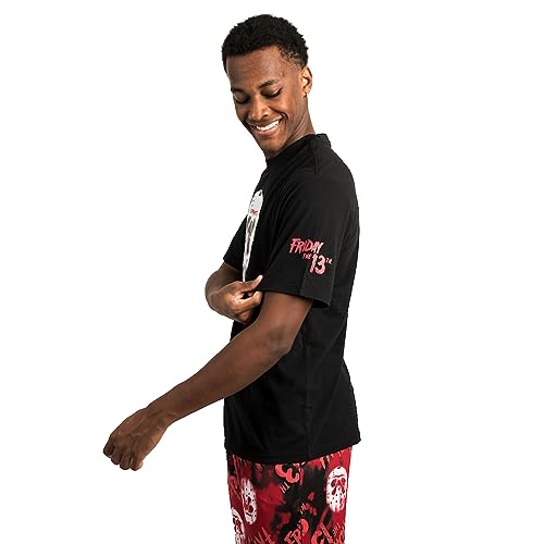 Fabric type: 100% CottonCare instructions: Machine WashCUSTOM DESIGN: Embrace the horror with this pajama set, featuring Jason's iconic hockey mask and the movie's logo on the t-shirt, while the pajama pants boast an all-over print of Jason's mask and the movie's logo.2-PACK: This set includes a charcoal short sleeve crew neck t-shirt and red and black wash sleep pajama pants, making it a perfect gift for horror movie enthusiasts or a terrifying addition to your nighttime wardrobe.OFFICIALLY LICENSED: This Friday the 13th pajama set is officially licensed, ensuring an authentic product that captures the essence of the iconic horror movie franchise. Experience the genuine terror of Jason with approved merchandise.HIGH-QUALITY MATERIALS: The t-shirt is made with a cozy cotton-polyester blend, while the pants feature a soft polyester-spandex blend, ensuring a plush and relaxed fit for a restful night's sleep.CARE INSTRUCTIONS: Machine wash the pajama set on cold with like colors, and tumble dry on low heat. Use only non-chlorine bleach when needed and avoid fabric softener. Cool iron when necessary and do not dry clean. Perfect for everyday use. first-class materials and excellent craftsmanship ensure long-lasting durability.