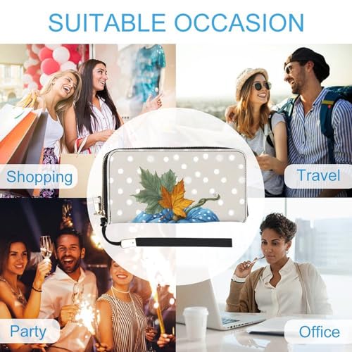 More information about Blue Pumpkin with Autumn Leaf PU Leather Clutch Long Bifold Wallet, Coin Purse Credit Pass Case, Durable Card-Holder Money Storage for Women Men