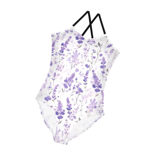 KLL Lavender Field Girls 1 Piecing Swimsuits Beach Swimming Suits Adjustable Shoulder Strap Cute