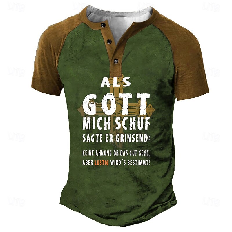 More information about Men's Funny Graphic T-Shirt Short Sleeve - Humorous German Quote Tee: 'When God Created Me, He Said It'd Be Funny!'