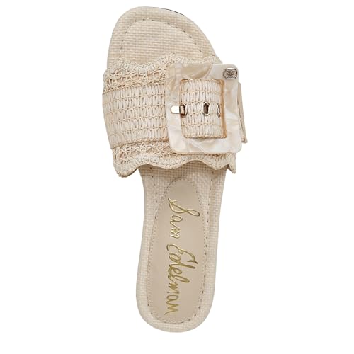 • The Bambi slide sandals boast a raffia upper complemented by an oversized resin buckle. Play with proportion and pack a punch.