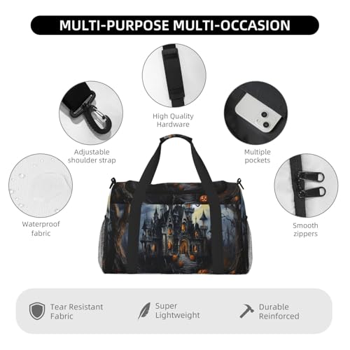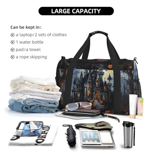 • This Halloween Pumpkin Print travel duffle bag offers ample space measuring 50x33x26 cm (19.7x13x10.2 inches), for packing clothes, electronics, and daily essentials.