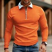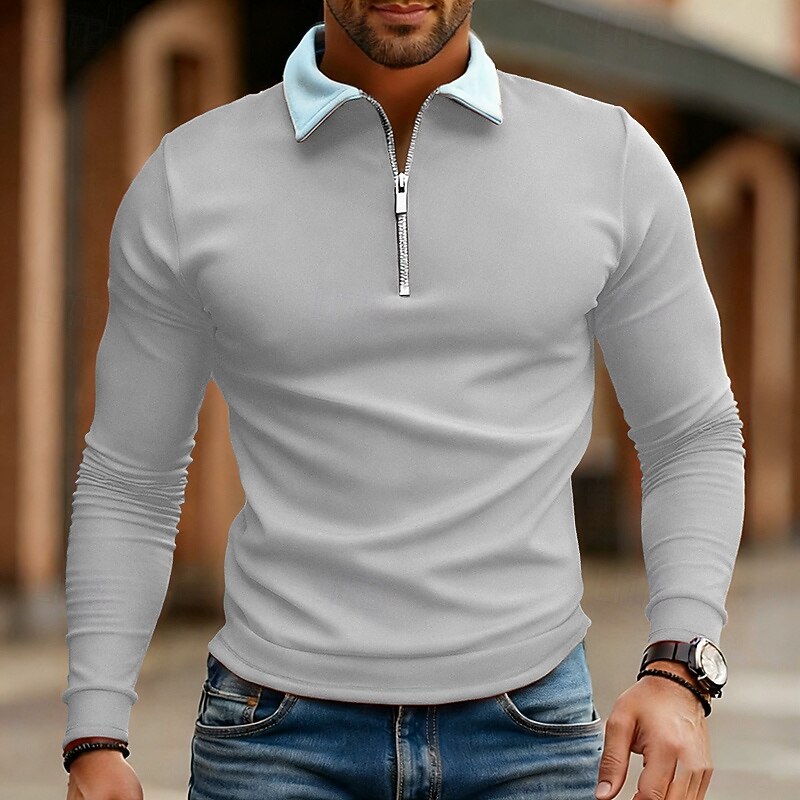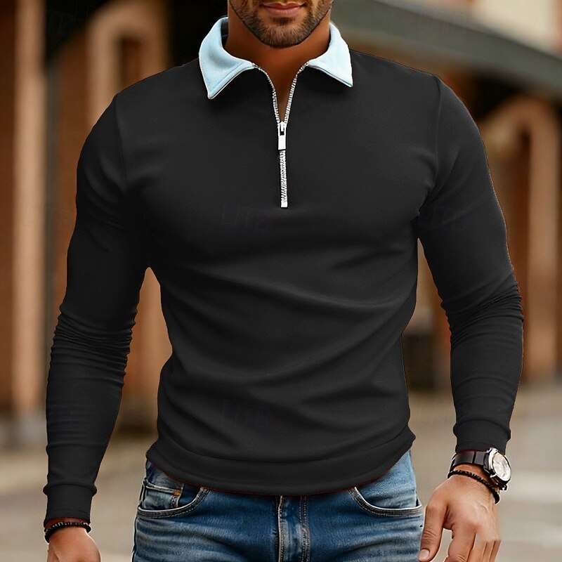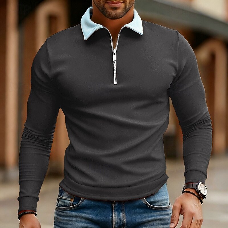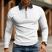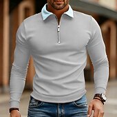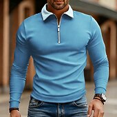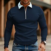 More information about Men's Polo Shirts Quarter Zip Polo Daily Wear Date Quarter Zip Long Sleeve Fashion Basic Color Block Zipper Spring Fall Regular Fit Lake Blue Black White Wine Navy Blue Royal Blue Polo Shirts