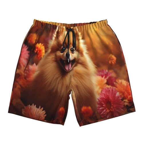 HOT ! Flowers and Cute Puppy Men Beach Pants – Swim Trunks for Men,Quick-Dry and Comfortable, Suitable for Beach, Surf, and Everyday Wear