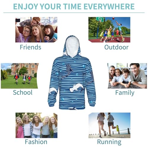 Sharks on White Blue Striped Kid Hoodies Boys Sweatshirts Girls Pullover with Pocket 7