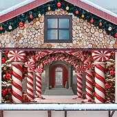 More information about Christmas Garage Door Cover Large Hanging Backdrop Castle Candy Cane Cute 3D Party Outdoor Holiday Shooting Backgrounds Yard Home Decor