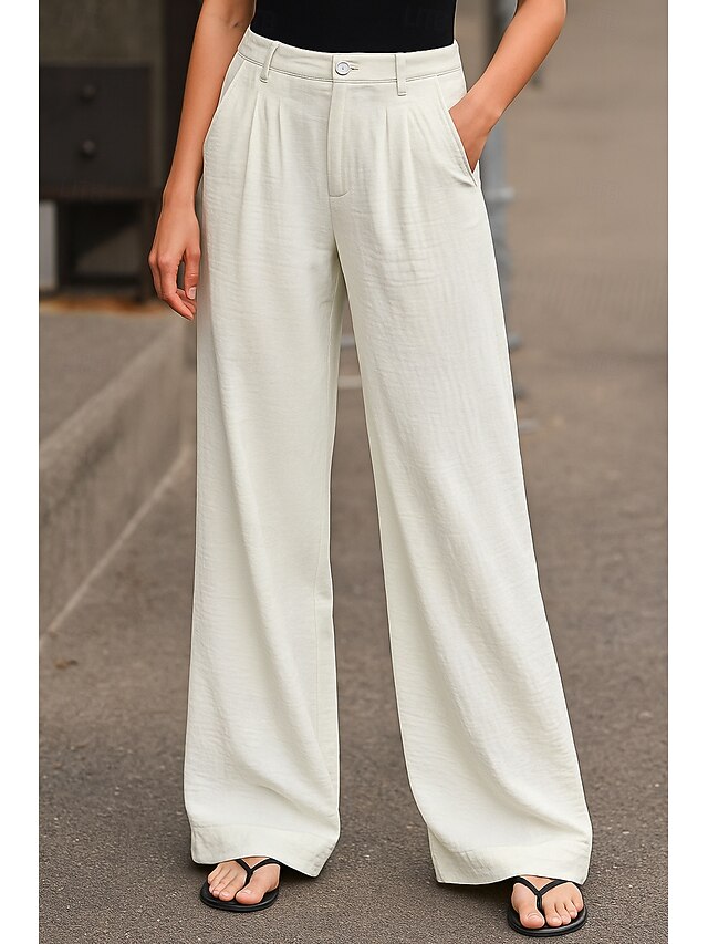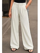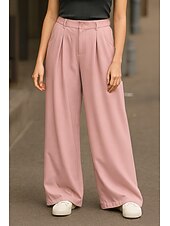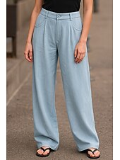 More information about Women's Wide Leg Chinos Pants Trousers Basic Casual Full Length High Waist Plain Comfort Outdoor Inelastic Vacation Street Daily Pink Beige Gray Light Blue Summer Spring Loose Fit