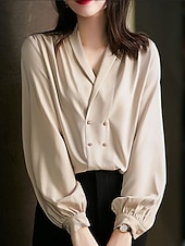 More information about Women's Shirt Dressy Blouse Plain Active Stylish Long Sleeve Shirt Collar Regular Tops Holiday Going out Ruched Apricot Spring Fall