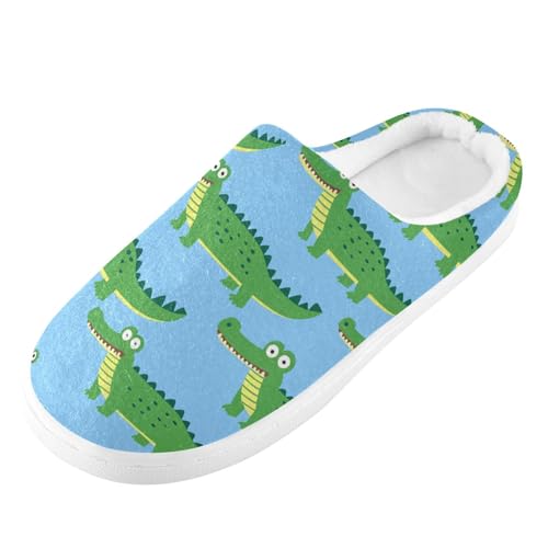 JUNZAN Green Crocodiles Blue Women Home Cotton Slippers Non Skid Memory Foam House Shoes for Hospital Funny Presents 6-7 4