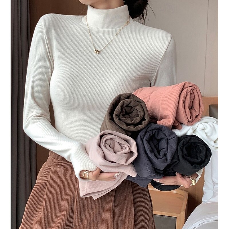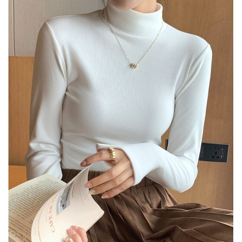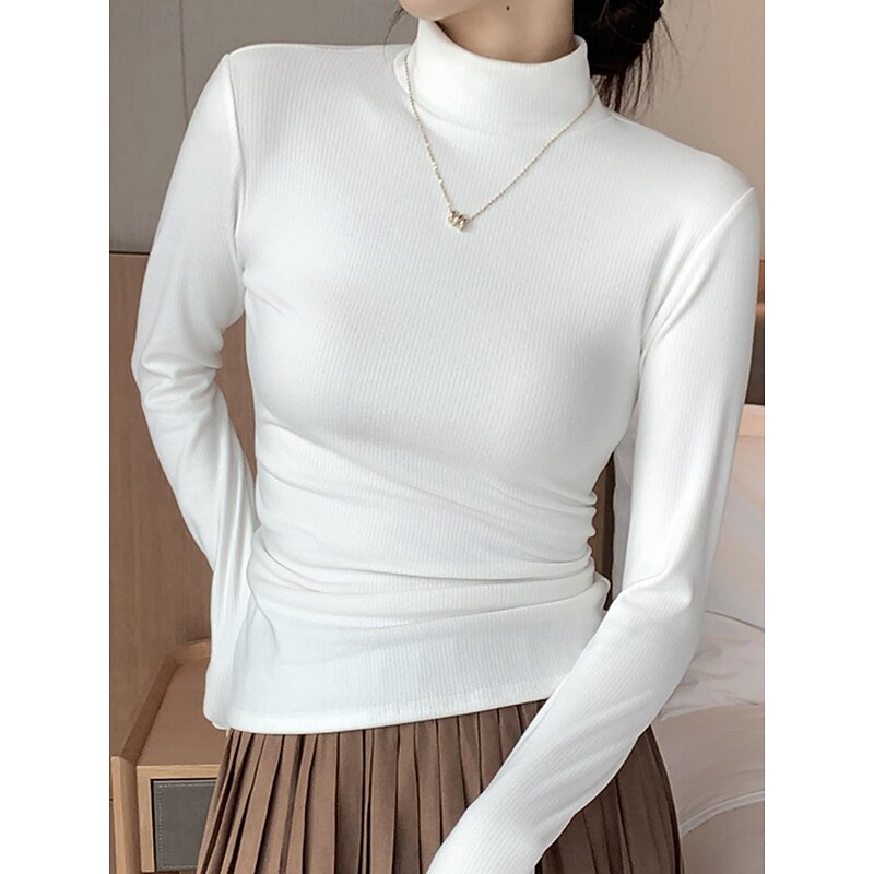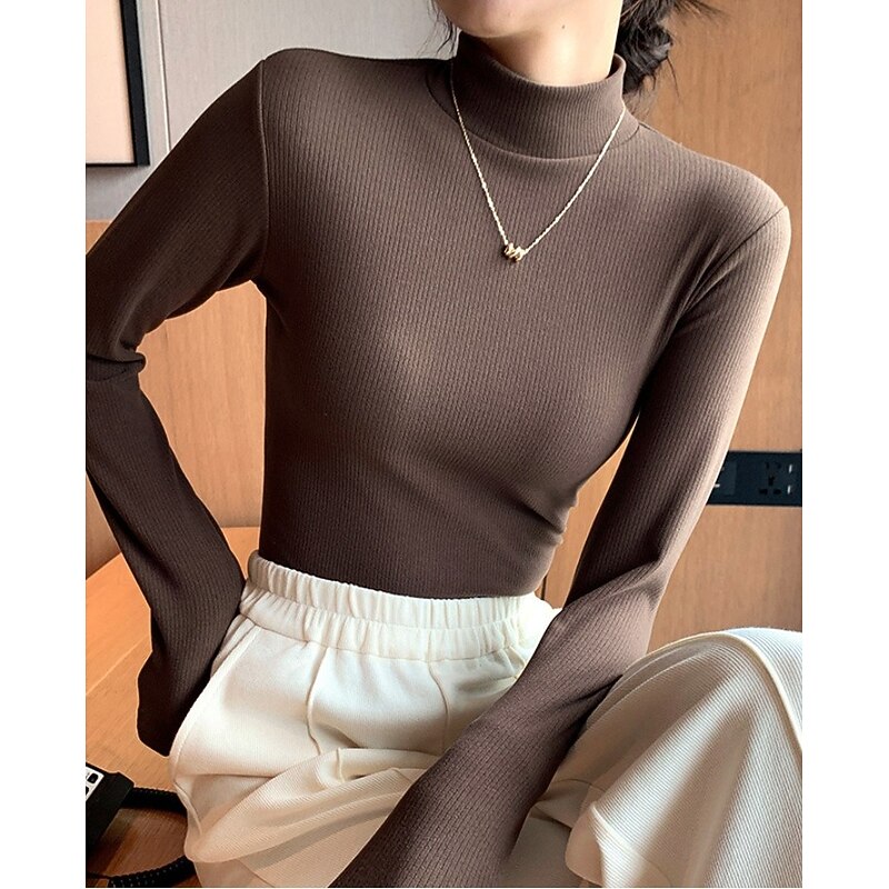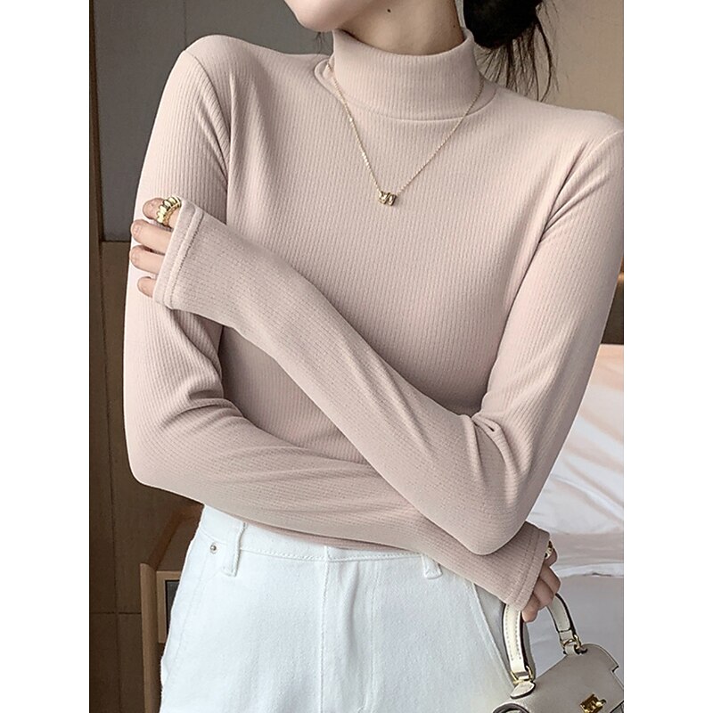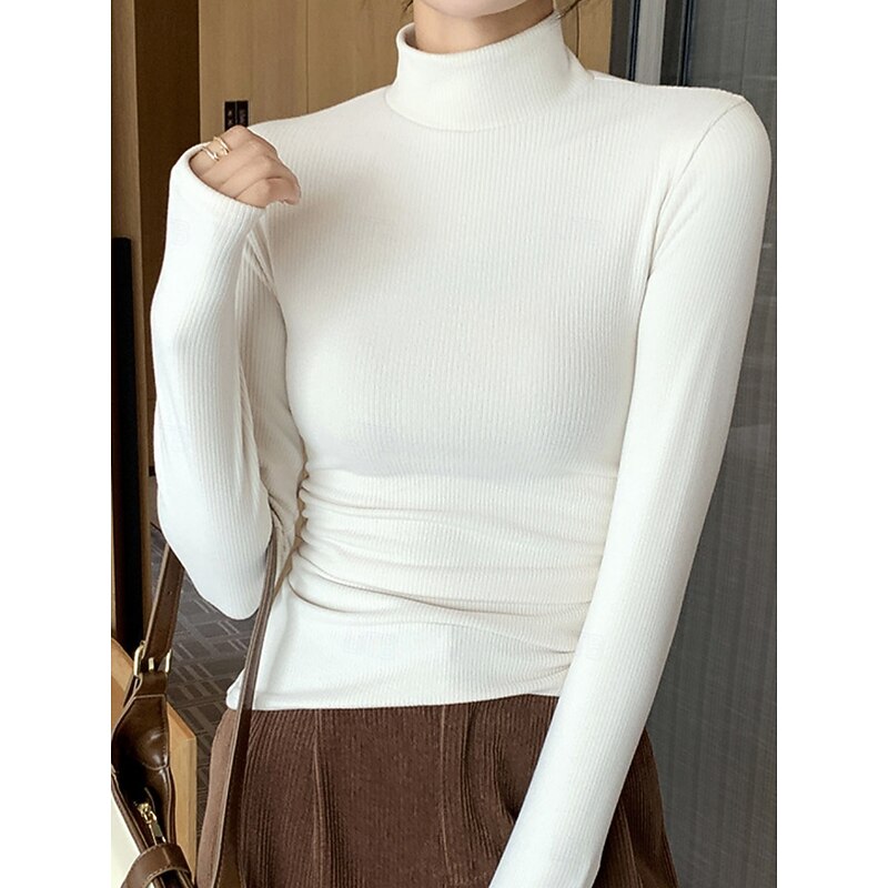 More information about Women's Sweater Elegant Casual Soft Pure Color Ribbed Turtleneck Knitted Long Sleeve Regular Tops Knit Outdoor Daily Weekend Black White Fall Winter