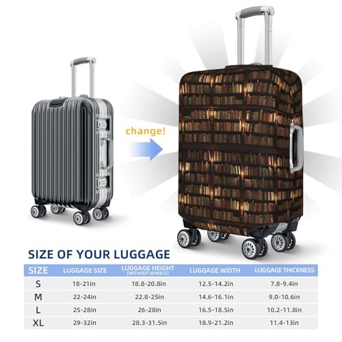 HOT ! Bookshelves Print Luggage Cover Washable Elasticated Suitcase Covers TSA Approved Stylish Dust and Scratch Resistant Case Protector for Kids and Adults