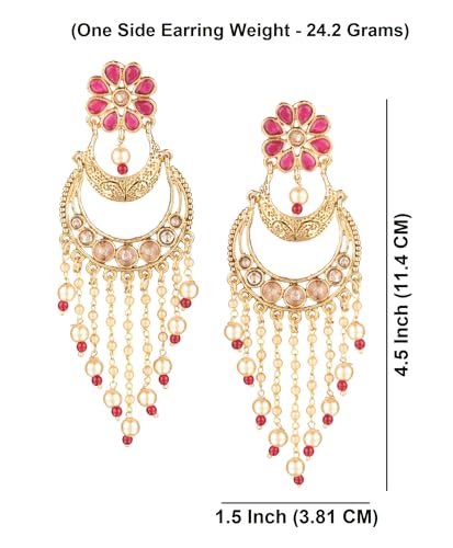 Efulgenz Indian Earrings for Women Chandelier Indian Jewelry Bollywood Antique Floral Crystal Kundan Beaded Faux Pearl Tassel Big Dangle Chandelier Long Earrings Set 2