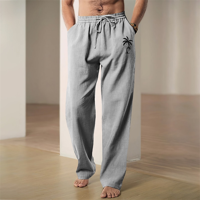 Highlights [Fabric and Fit] : Designed for comfort in mind, these men's pants are crafted from high-quality polyester, offering both breathability and durability. The mid-waist, regular fit is perfect for maintaining a relaxed profile while ensuring a stylish look for everyday wear. [Design Highlights] : These trousers feature an eye-catching coconut tree graphic, adding a unique and tropical flair to your wardrobe. The elastic waistband with an adjustable drawstring guarantees a tailored and secure fit, while the straight-leg design offers a classic silhouette and allows for easy movement. [Occasions] : Whether you're heading out for a casual day or planning a vacation, these versatile pants are ideal for both settings. Their lightweight construction makes them suitable for spring and fall, providing comfort and style throughout the seasons. [Sizes Available] : Available in a wide range of sizes including S, M, L, XL, 2XL, and 3XL, ensuring there is a perfect fit for everyone. These pants cater to a variety of body types and style preferences, making them a versatile addition to any wardrobe.