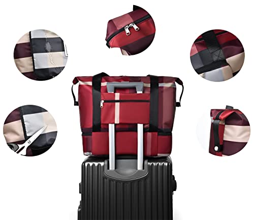 HOT ! New Foldable Dry/Wet Separation Travel Duffel Bag with Shoe Compartment Large Capacity Folding Weekender Overnight Bag Lightweight Waterproof Gym Tote Bag (B-Red)