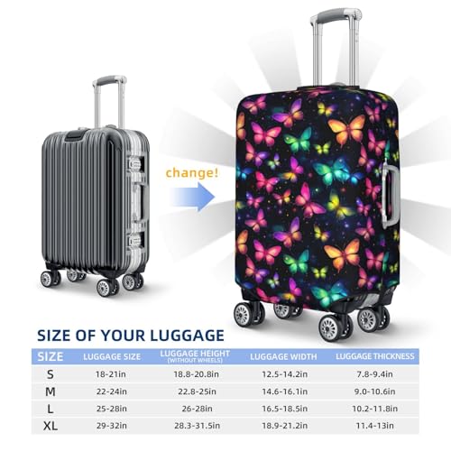 HOT ! Colorful Neon Butterfly Travel Luggage Cover Suitcase Protector Washable Baggage Covers Fits 18-30 Inch Casex-Large