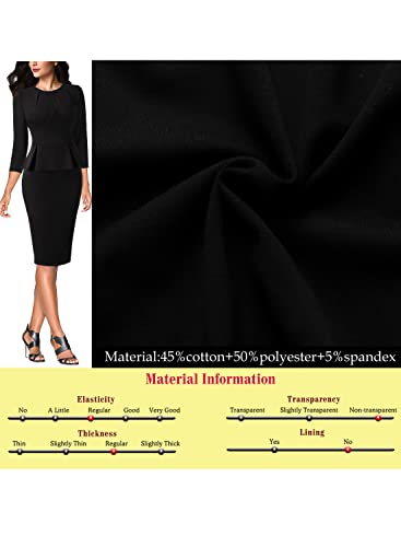 More information about VFSHOW Womens Pleated Crew Neck Peplum Work Business Office Bodycon Pencil Sheath Dress