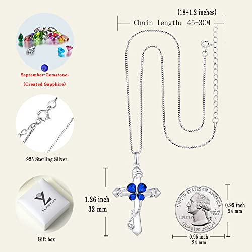 YL Women's Butterfly Cross Necklace Sterling Silver Birthstones Leaves Pendant Crucifix Jewelry for Women 4