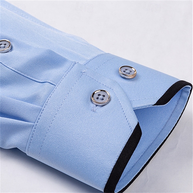 Men's Dress Shirt Button Down Shirt Wrinkle Resistant Wedding Outdoor Light Blue Black White Pink Long Sleeve Summer Spring Clothing Apparel 6