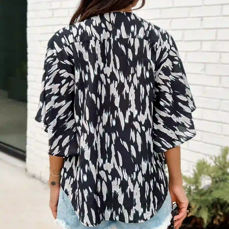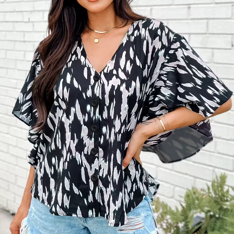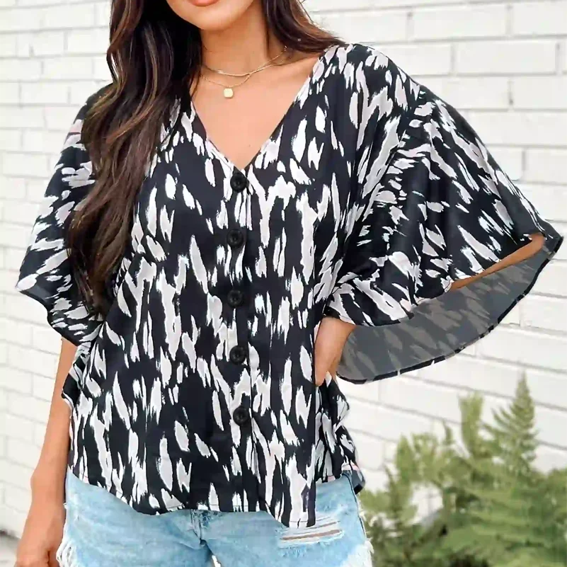 Plus Size Women's Blouse V Neck Casual and Fashionable Summer Blouse
