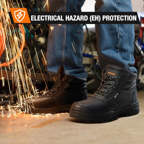 NINGO Steel Toe Work Boots for Men, Non Slip & Puncture Resistant Construction Boots with Breathable Lining, EH Protection, Comfortable Mens Safety Leather Work Shoes for Industrial, Walking Warehouse 6