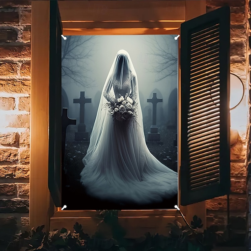 $15.49 - Halloween Window Cover Decorations, Fabric Ghost Bride Creepy Halloween Curtain Horror Movie Poster Window Door Covering Decor for Haunted House, Scary Halloween Window Clings Decals Indoor Outdoor 2025. Shop for cheap Halloween Wall Tapestries online? Buy at lightinthebox.com on sale today!