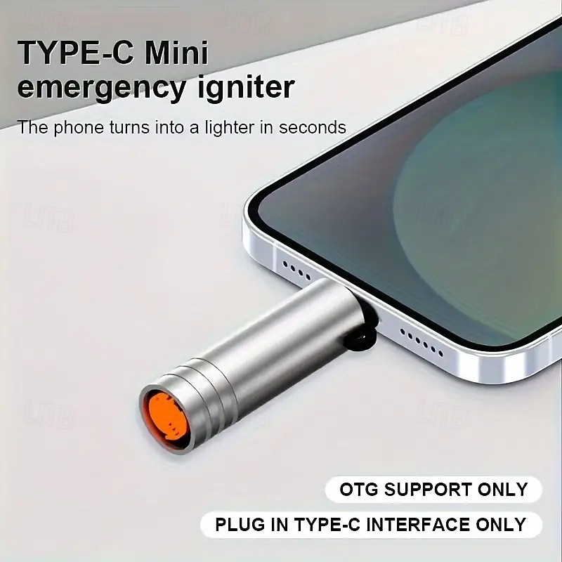 Convenient Usb-c Emergency Lighter - Made Of Aluminum Alloy Requires No Batteries Simply Enable Your Phone's Otg Mode To Use - Automatically Shuts Off After 8 Seconds For Outdoor Safety 1