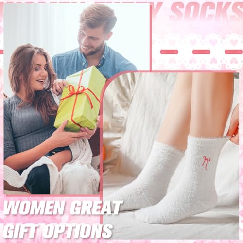 Geyoga 5 Pairs Women's Bow Fuzzy Socks Winter Soft Slipper Socks Coquette Stuff Fluffy Thick Spa Home Sleeping 4