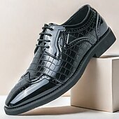 HOT ! Men's Black Crocodile Pattern Patent Leather Oxfords - Elegant Dress Shoes for Formal Events