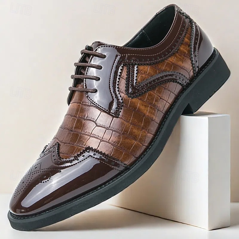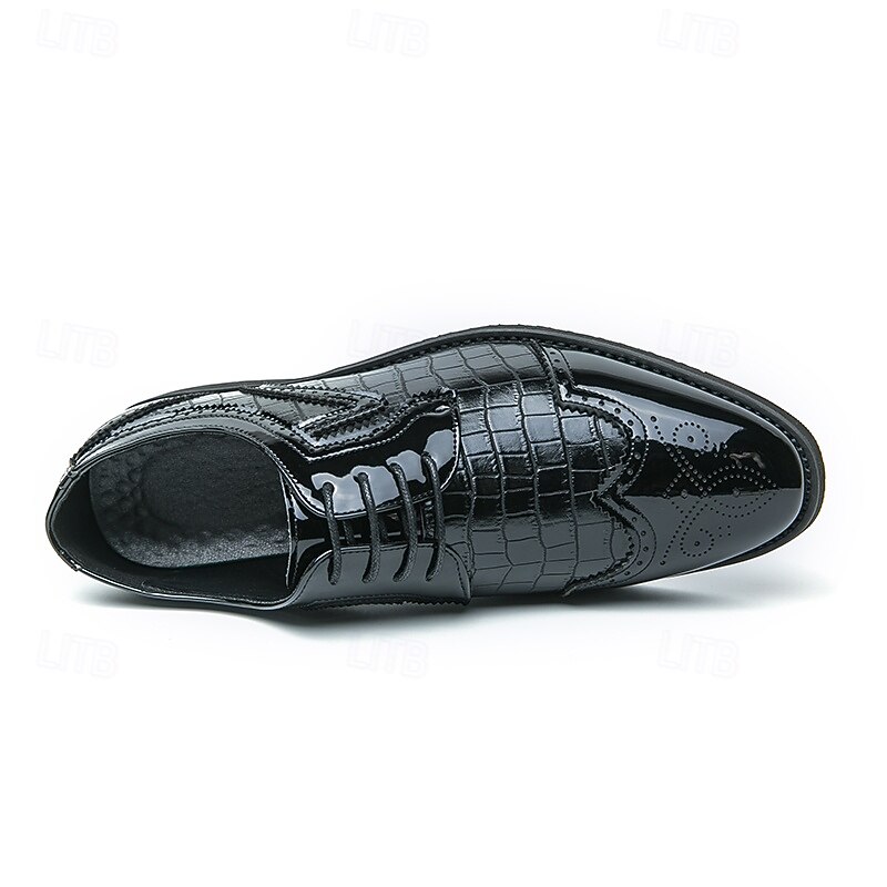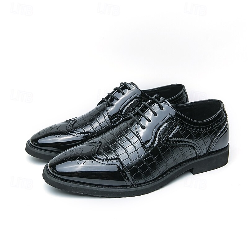 Men's Black Crocodile Pattern Patent Leather Oxfords - Elegant Dress Shoes for Formal Events 1