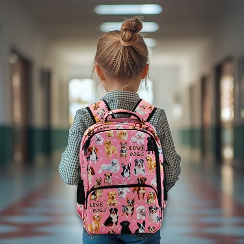 Dogs Backpack for Kids Boys Girls, Cute Backpack for School Outdoor Travel 16.5inch, Gifts for Dogs Lover (Pink) 6