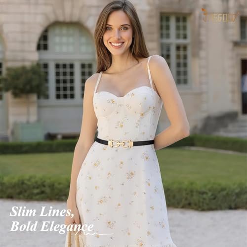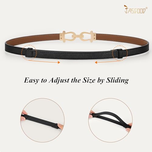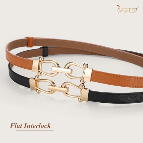 JASGOOD 2 Pack Women’s Thin Belts Pu Leather Adjustable Skinny Waist Belts for Jeans Pants Dresses with Gold Buckle 5