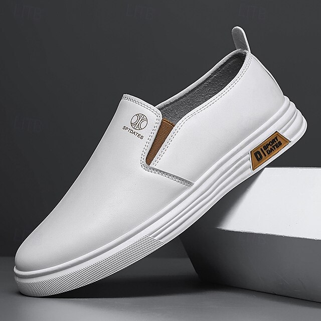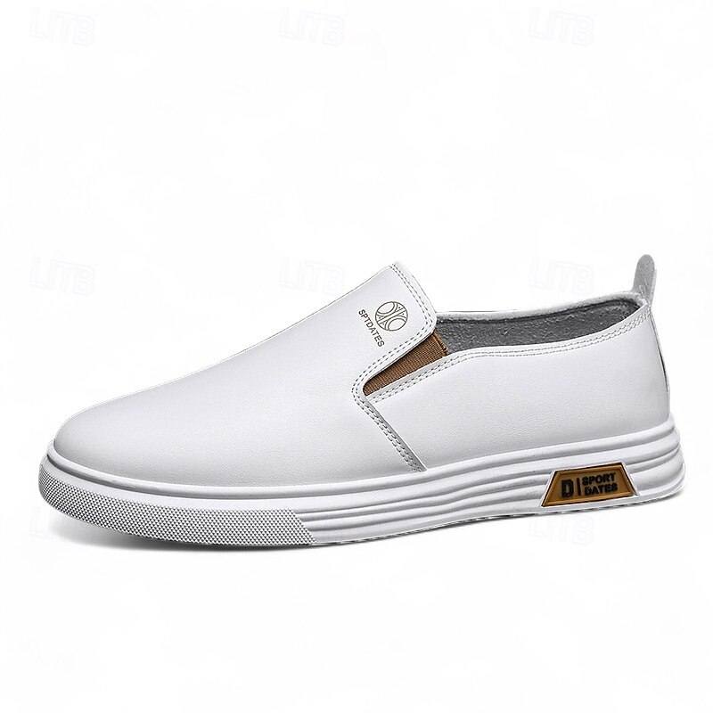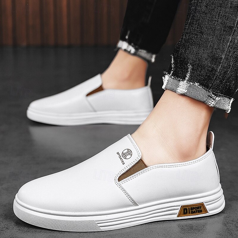 More information about Men's White Slip-On Sneakers with Contrast Faux Leather Accents and Non-Slip Rubber Soles - Stylish and Comfortable for Casual and Everyday Wear