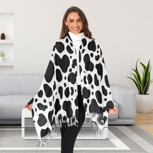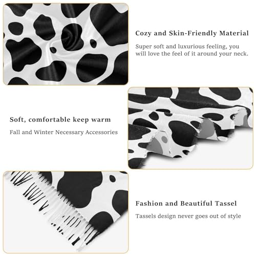 Women's Cow Print Scarf Pashmina Feel Shawls Wraps Fall Winter Warm Large Scarves Fashion Tassel Long Scarf 6
