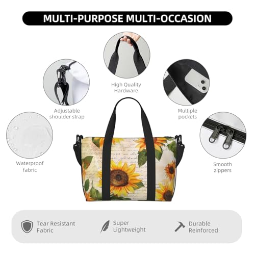 Travel Duffle Bag Flower Sunflower Newspaper Weekender Overnight Bags Luggage Bag for Women Men Waterproof Sports Gym Bag Hand Bag with Shoulder Strap 5